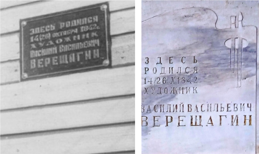A memorial plaque on the Vereshchagins' house was opened in 1954. Later it was replaced by a white marble plaque.
