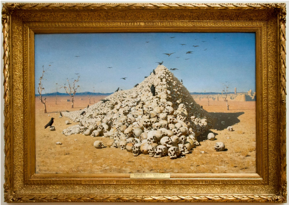 Картина уничтожена художником после обвинений некоторых официальных лиц в клевете на русскую армию, которая-де не оставляет своих убитых