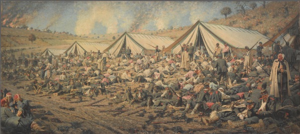 Русско-турецкая война 1877–1878 гг. началась в обстановке патриотического подъема, охватившего русское общество. Негодование вызывали сообщения о турецких зверствах в отношении славян. Многие отправились на Балканы, чтобы помочь братскому болгарскому народу. В. В. Верещагин воспринимал Балканскую войну как сражение России за освобождение славянских народов от турецкого ига. Через четыре дня после вступления в войну России он выехал на Балканы к театру военных действий. «Выполнить цель, которой я задался, дать обществу картину настоящей неподдельной войны нельзя, глядя на сражение в бинокль из прекрасного далека, а нужно самому все прочувствовать и проделать, участвовать в атаках, штурмах, победах, поражениях, испытать голод, болезни, раны. Нужно не бояться жертвовать своей кровью, своим мясом, иначе картины мои будут не то», – считал В. В. Верещагин. По предварительной договоренности с генералом А. А. Галлом его причислили к группе адъютантов главнокомандующего, великого князя Николая Николаевича, но без казенного содержания и с правом носить штатскую одежду. Такие условия, на взгляд художника, обеспечивали ему, как и раньше в Средней Азии, относительную свободу. Передвигался он с казачьей дивизией, которой командовал опытный генерал Дмитрий Иванович Скобелев. В течение десяти месяцев В. В. Верещагин принимал участие в боях (в том числе в бою за Шипку у деревни Шейново), видел третий штурм Плевны, совершал вместе с отрядом М. Д. Скобелева переход через Балканы.