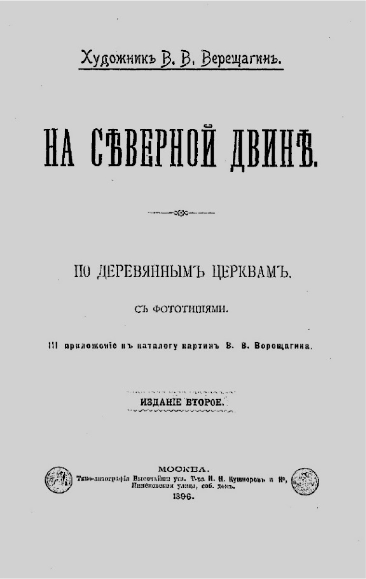 В. В. Верещагин решил основательно познакомиться с Русским Севером, и вместе со второй женой Лидией Васильевной* и четырехлетней дочерью Лидочкой отправился в плавание по Северной Двине.