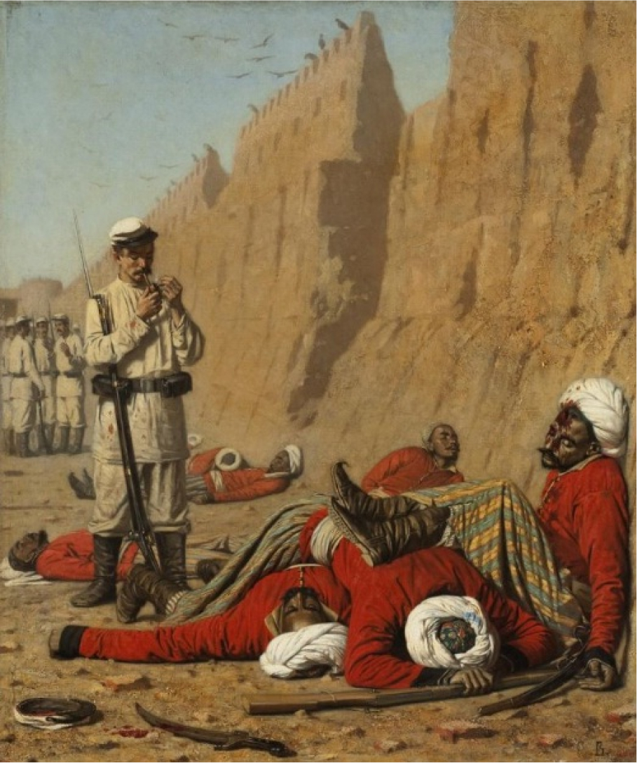 Первое «знакомство с войной» произвело на В. В. Верещагина сильное впечатление. В Ташкенте он написал две картины «по мотивам обороны Самаркандской крепости» – «После удачи» и «После неудачи»; также писал этюды маслом и делал зарисовки архитектурных пейзажей и местных жителей. В конце 1868 г. художник уехал в Париж, чтобы продолжить учебу в Парижской Академии.