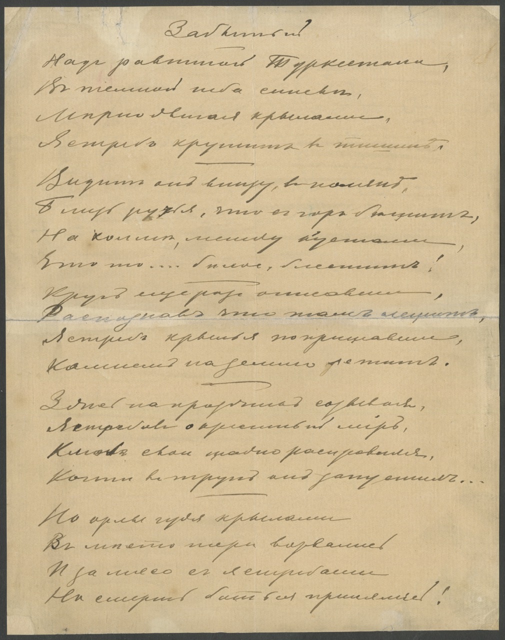 ВЕРЕЩАГИН Василий Васильевич. «Забытый». Стихотворение. [Туркестан]. Автограф. [1867]