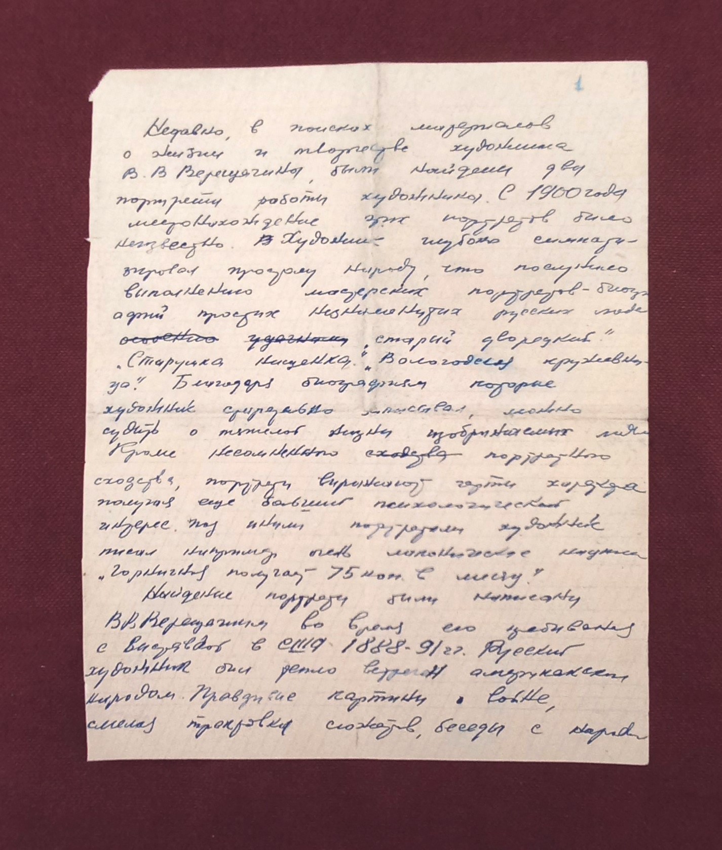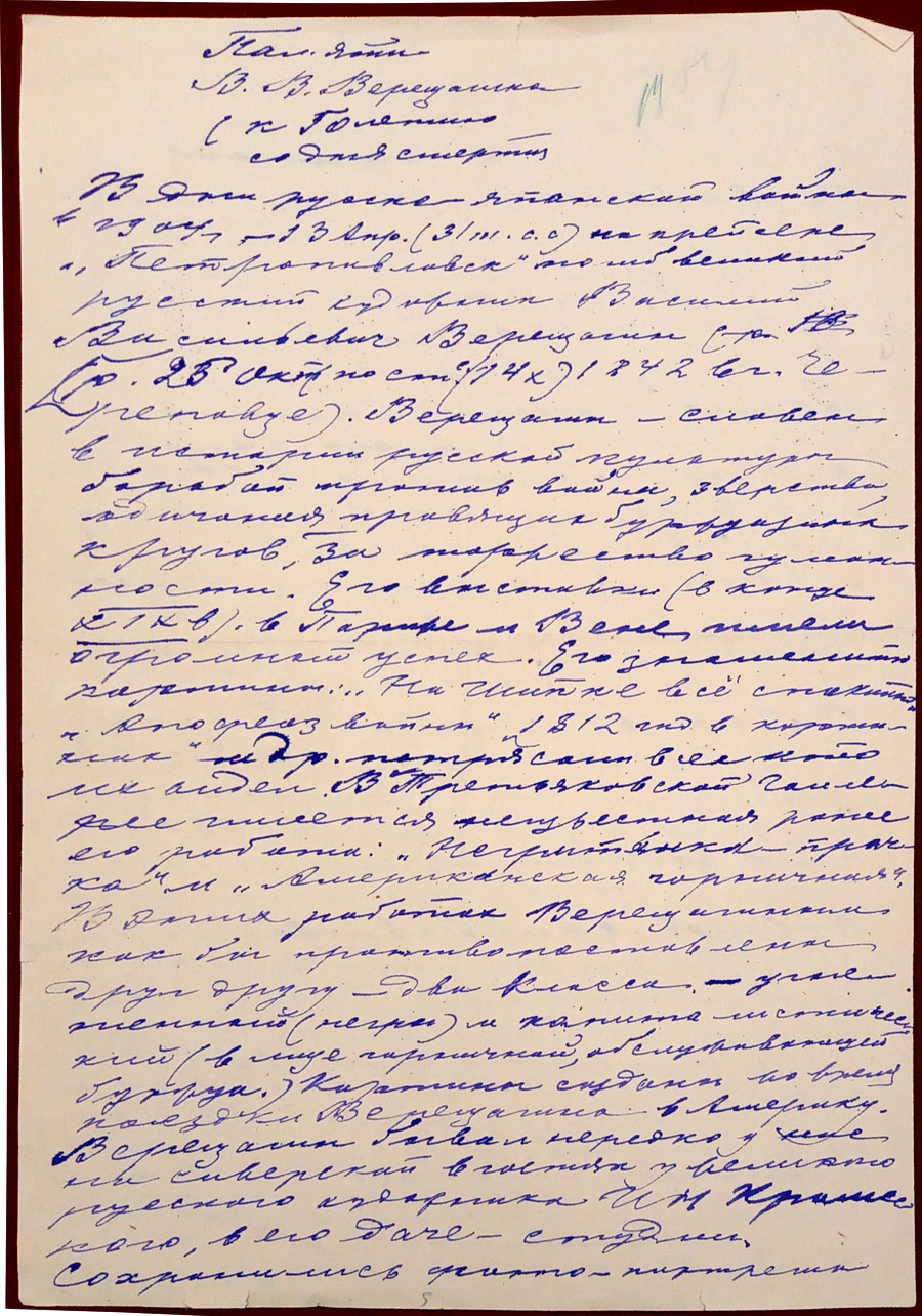 Кузнецов А. Заметки о двух неизвестных портретах В. В. Верещагина Ф. 423 Лбовский А. Н. Оп. 825 № 1734