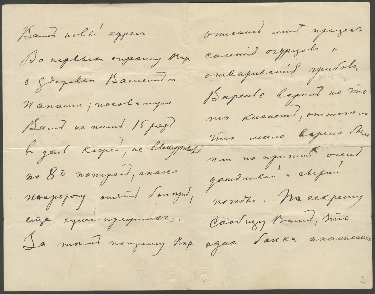 ВЕРЕЩАГИН Василий Васильевич. Письмо к жене Елизавете Кондратьевне Верещагиной. Б.д. 2 л.
