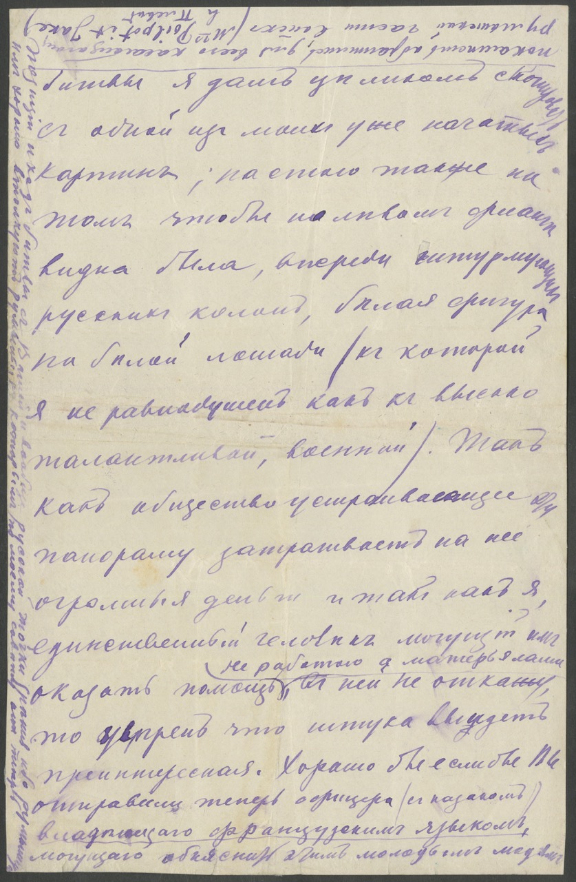 ВЕРЕЩАГИН Василий Васильевич. Письмо [Михаилу Дмитриевичу Скобелеву. Париж]. Без начала. 1898 г. 2 л.