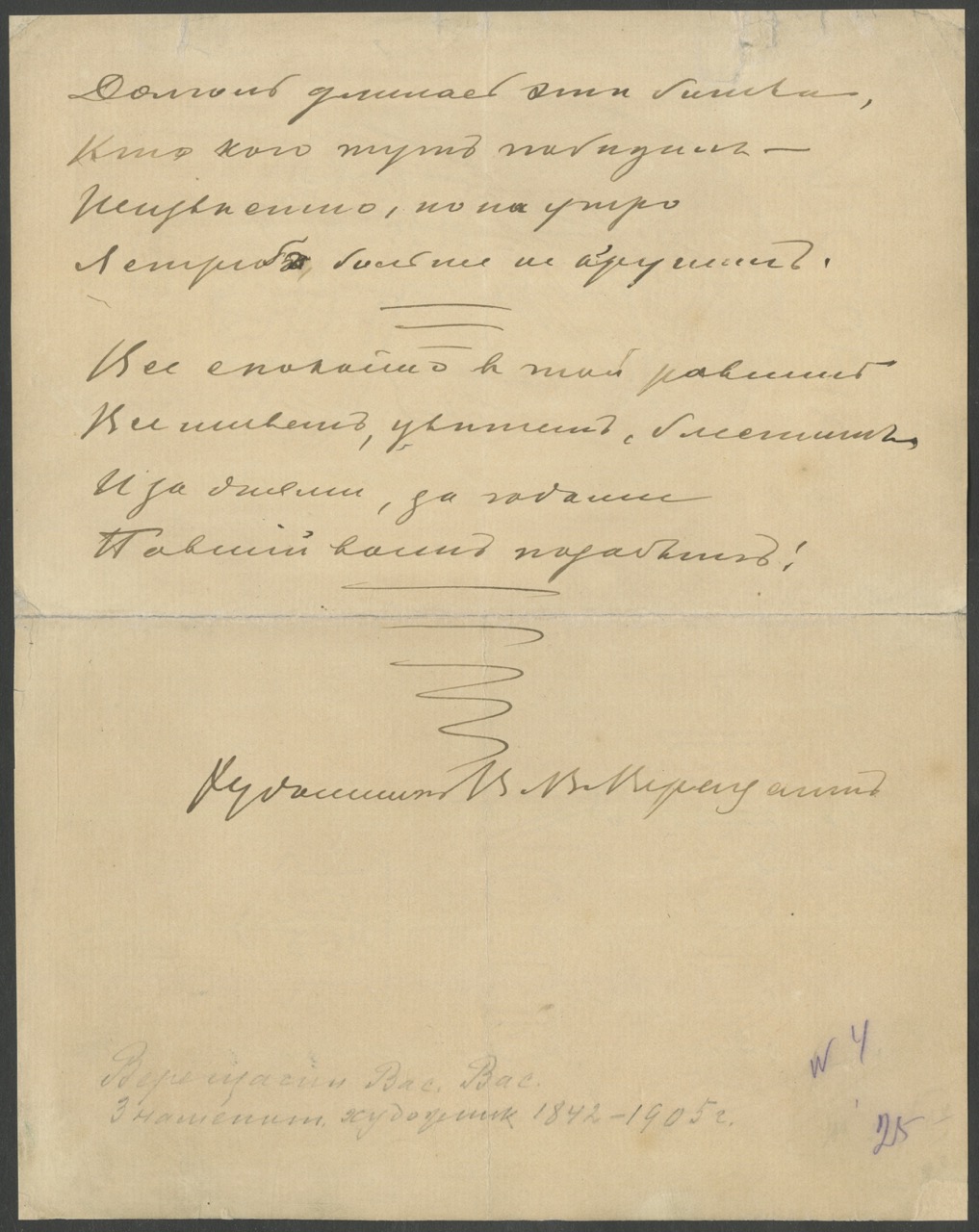 ![ВЕРЕЩАГИН Василий Васильевич. «Забытый». Стихотворение. [Туркестан]. Автограф. [1867] ВЕРЕЩАГИН Василий Васильевич. «Забытый». Стихотворение. [Туркестан]. Автограф. [1867]](/upload/iblock/135/pdscvkpghwycpm6t3tfraj352jx1f2n1/1.3.1-_1_.-137-Vereshchagin-2-1-_-krupnyi_-razmer.jpeg)