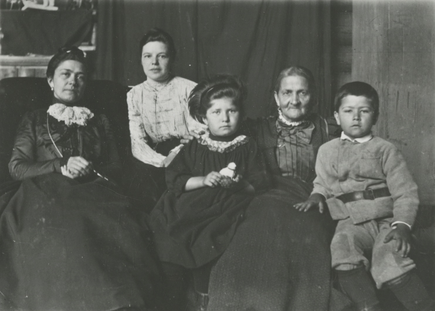 Л. В. Верещагина (слева) с детьми и матерью П. М. Андреевской (2-я справа). Копия.