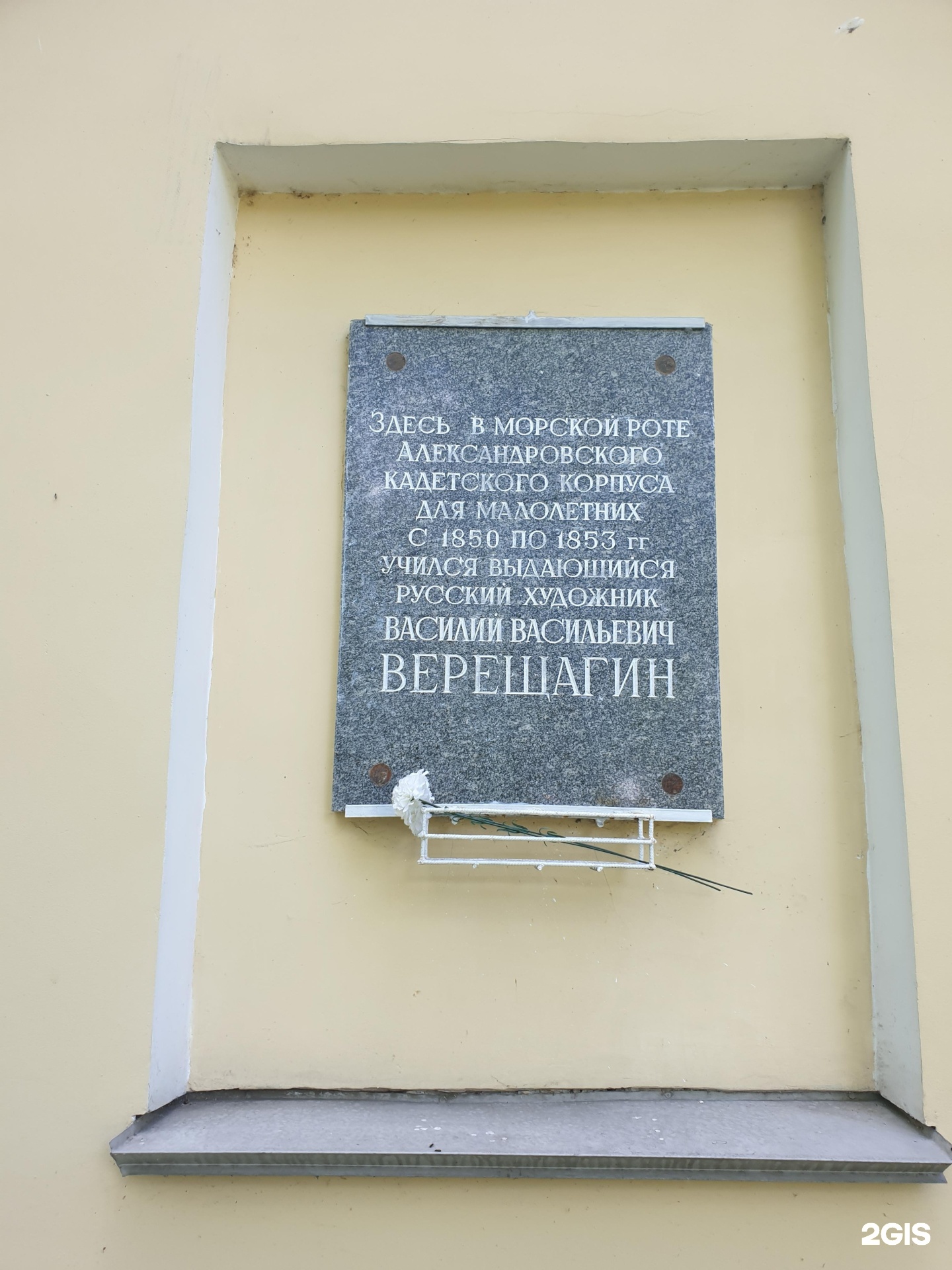 Мемориальная доска на здании Высшего военно-морского инженерного училища (бывшем здании Александровского кадетского корпуса для малолетних, Кадетский бульвар, 1В, Пушкин, Санкт-Петербург, Россия)