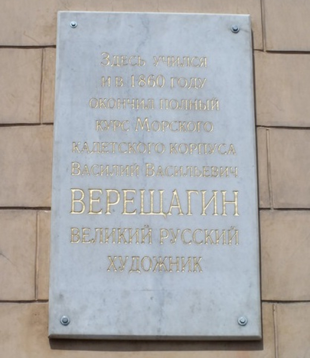 Мемориальная доска на здании морского корпуса Петра Великого Военно-морской академии имени Кузнецова (бывшем здании Морского кадетского корпуса)