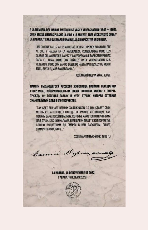 Открыта 14 ноября 2022 года «по случаю 180-летия со дня рождения Василия Верещагина и 120-летия его визита на Кубу»