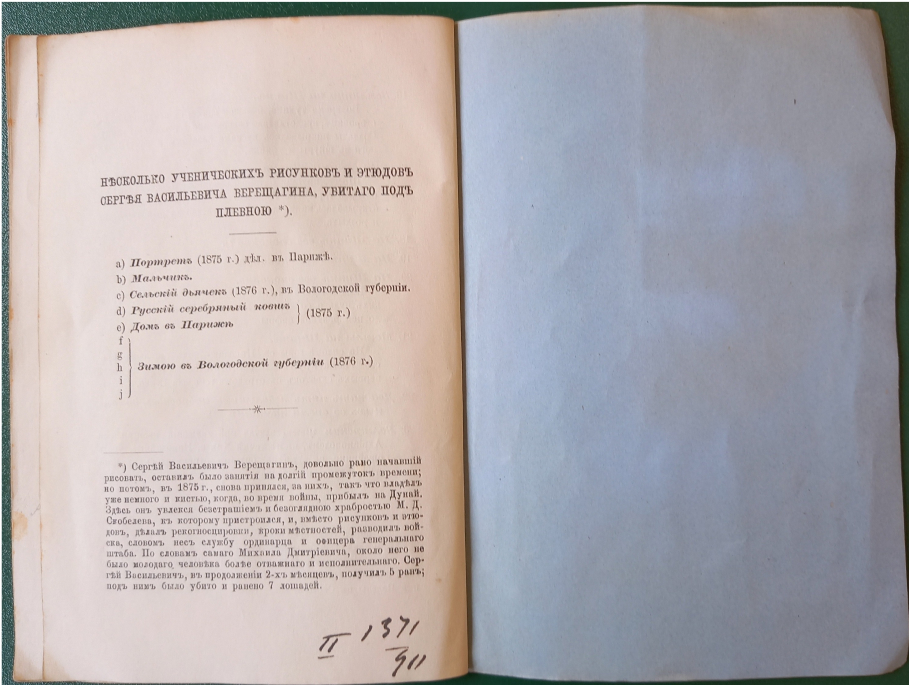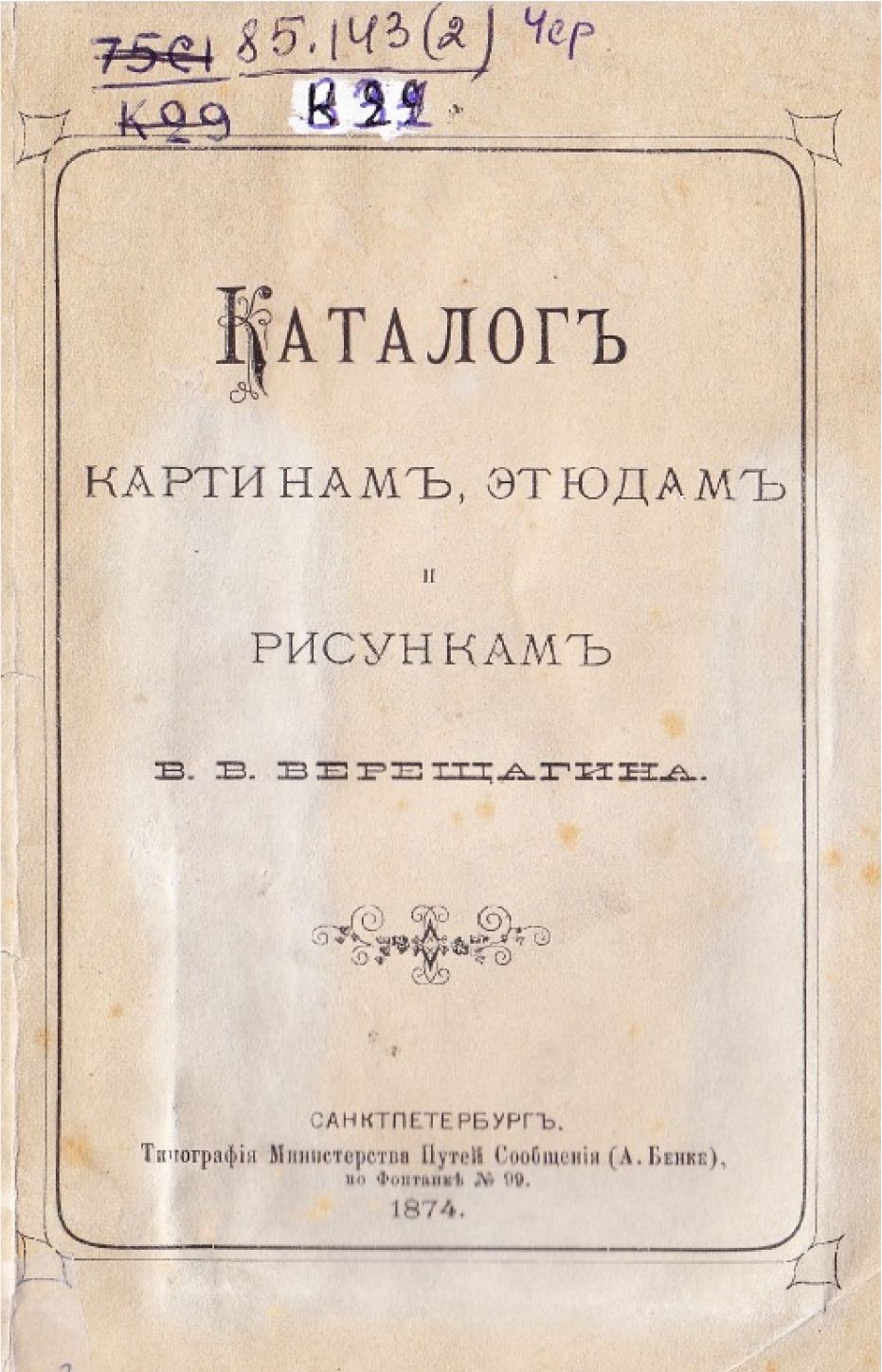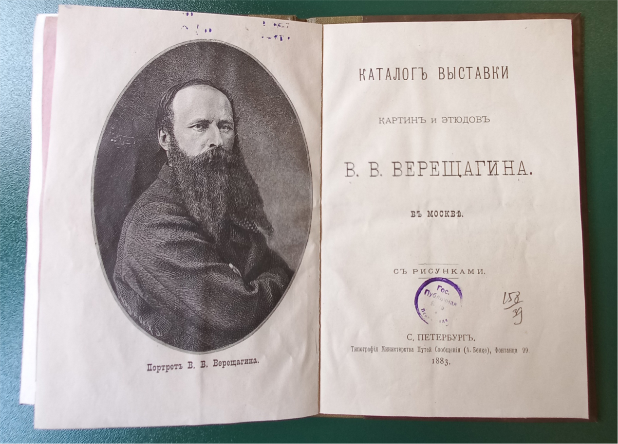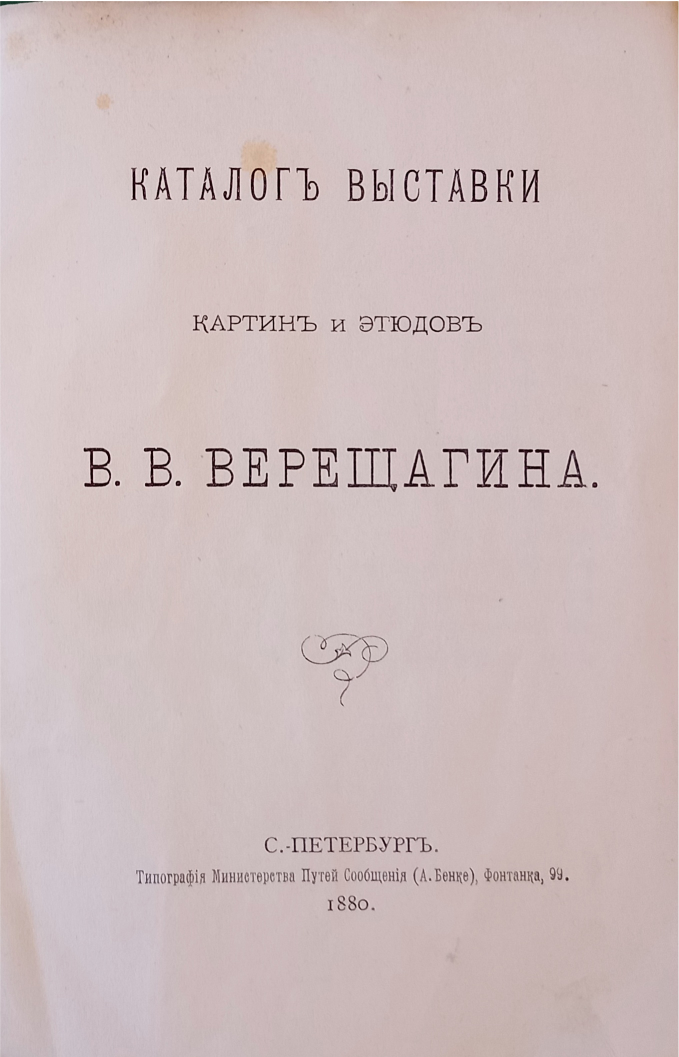 Каталог картинам, этюдам и рисункам В. В. Верещагина. – Санкт-Петербург : Типография Министерства путей сообщения (А. Бенке), 1874.
